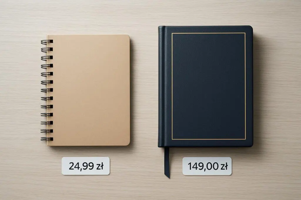 Jeśli porównamy koszty, notesy wypadają bardzo dobrze na tle innych gadżetów. Ulotki czy plakaty mają krótki czas życia i często są wyrzucane niemal od razu. Gadżety elektroniczne, jak pendrive’y czy powerbanki, są droższe w produkcji i zwykle nie oferują tak dużej powierzchni reklamowej jak okładka notesu. Notatnik łączy niską cenę jednostkową z długim okresem używania.